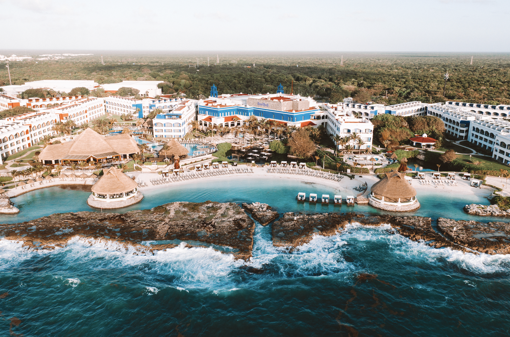 Hard Rock Hotel Riviera Maya (pictured, below) is a sprawling oceanfront estate that offers two distinct experiences: the family-friendly Hacienda and the elevated adults-only Heaven. With a combined 1,264 lavishly appointed rooms, the resort is a playground for all ages. It features an impressive 13 international restaurants and several bars and lounges, the signature Rock Spa, Body Rock Fitness Center and more. Additional main attractions include the massive Rockaway Bay Water Park, a private white-sand beach with snorkeling and kayaking, and the Music Lab for aspiring rock stars.